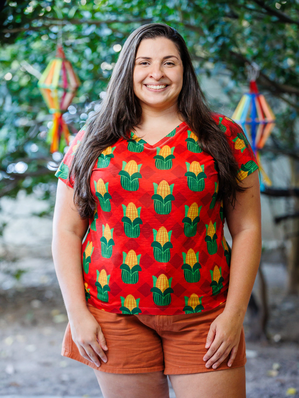 Com gola V e um design exclusivo, esta t-shirt combina praticidade e elegância, sendo perfeita para compor um visual descontraído sem perder o charme.