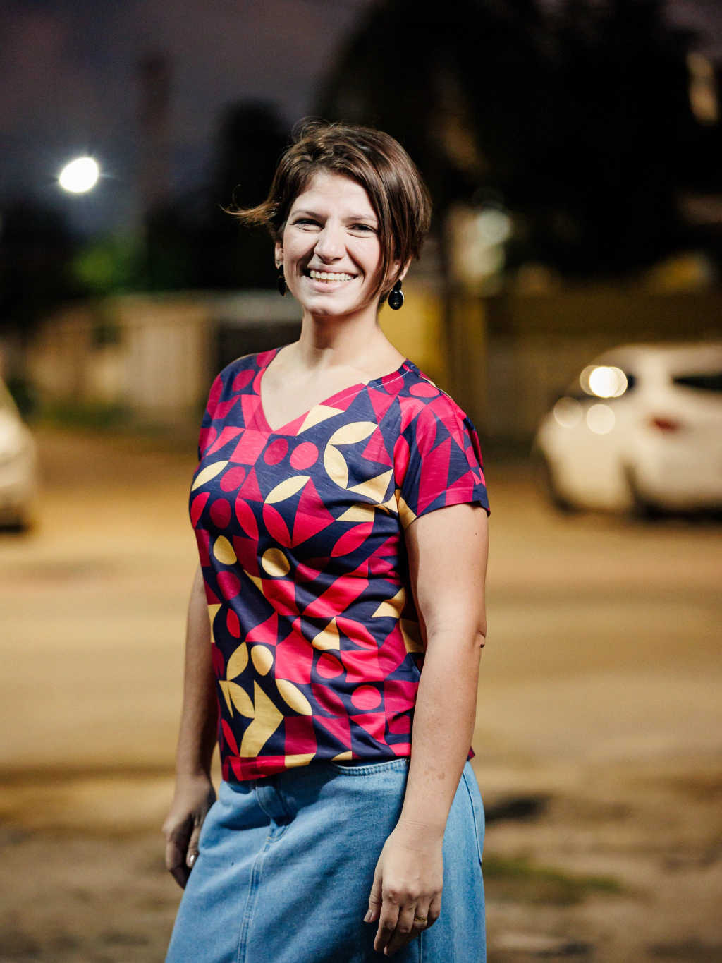 Com gola V e um design exclusivo, esta t-shirt combina praticidade e elegância, sendo perfeita para compor um visual descontraído sem perder o charme.